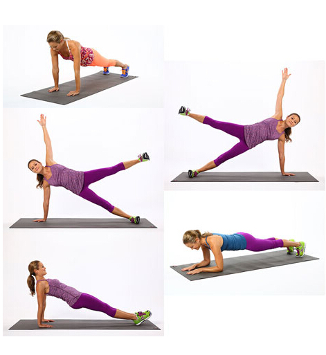 虽然是PLANK运动最好是静止状态,但追求更高一层运动效果的健身达人们会配合自己的需求来进行进阶版的锻炼,扭转身体能加速消耗腹部的脂肪。