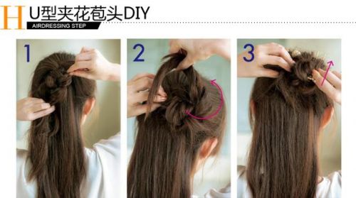 Step1:首先用手将头发向后拨,将头顶的头发松松的拱成一个弧形。