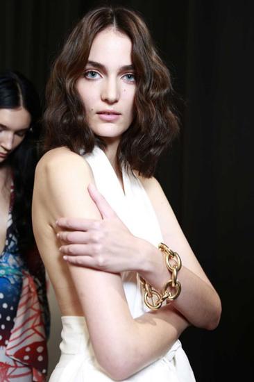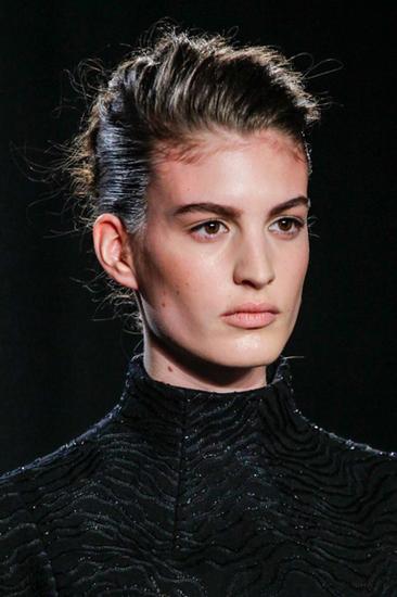 对于BOBO头长度的新娘来说,很难做盘发造型,但是如果只是平常的BOBO又太随意,不妨效仿下T台模特这样,把头发梳光滑,让你看上去更帅气。