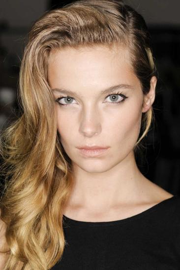 光滑的低垂发髻虽然看起来比较利落,但是很容易留下古板的印象,要是留出一些碎发,效果就会轻松不少。