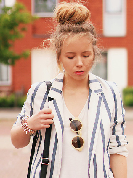 花苞头是最能衬出少女心的发型之一了,它简单干净,看起来自然大方,姑娘们只需将马尾扎起,以逆时针方向旋转成团,然后用夹子固定,最后用手扯松即可。