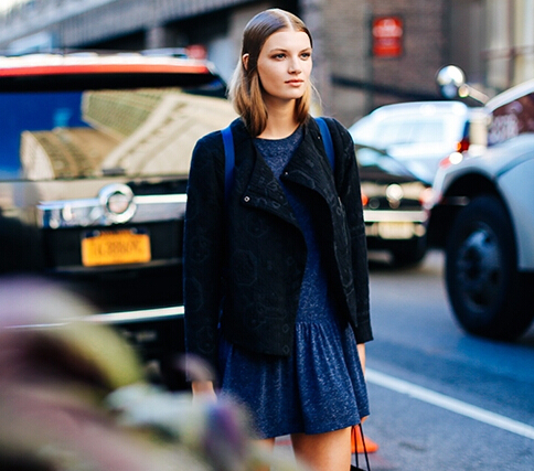 可爱的蓝色裙子、夹克和背包,加上一头可以被称作为“光滑的中分”发,这张摄于纽约的照片,真是极具街头感。当然能有如此叫人印象深刻的风格,最大的优势完全来源于这个姑娘的发型。她的中分不是我们常见的普通模样,她将头发中分,然后用造型品打湿、再将上半截完全固定贴合头皮,余下的则保持自然。这种大费心思的中分,值得学习值得效仿!