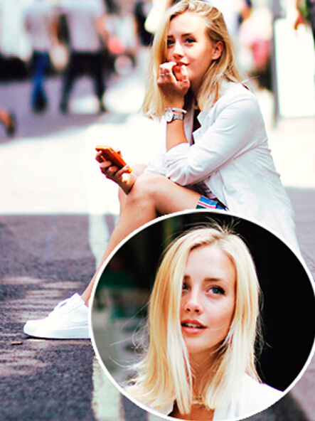 金发女郎天生就有优势!肤白貌美、金发碧眼,光是这四点,就够大多数的姑娘们艳羡了。尤其是,像这种看似不经意但又漫不经心的表情,朦胧之间魅力无穷。再细细看这个姑娘的眉毛,刻意只画了前半截,而在眼妆方面,又只细描了后半截,这样一来倒也相互呼应。