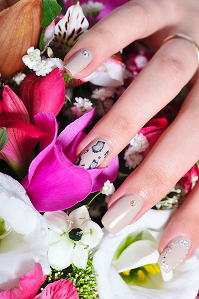 谁说狂野的豹纹图案不能应用在新娘美甲中,重点是只能在一个指甲上画,让你变身性感新娘。要是满手都画上豹纹图案,就未免狂野过头了。