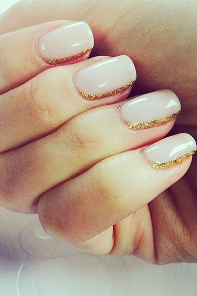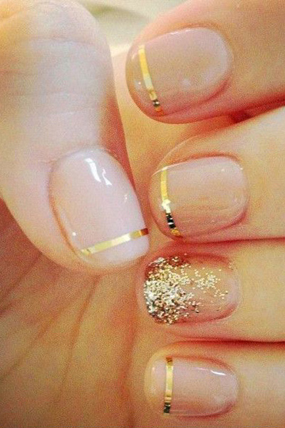 以肉色美甲做底,用金色线条来进行装饰的美甲造型非常酷,会跟你浪漫的婚纱形成极大反差。