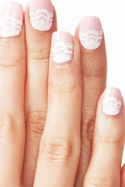 蕾丝图案一直以来都很受欢迎,你可以选择浅色甲油做底,创作温柔可人的美甲,也可以使用深色甲油做底,让整体效果更酷。