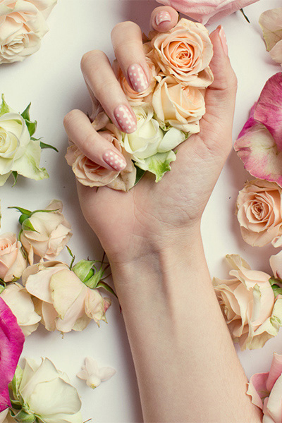 浪漫的波点图案很有小女人气质,看惯了法式美甲,你也可以试试这款。